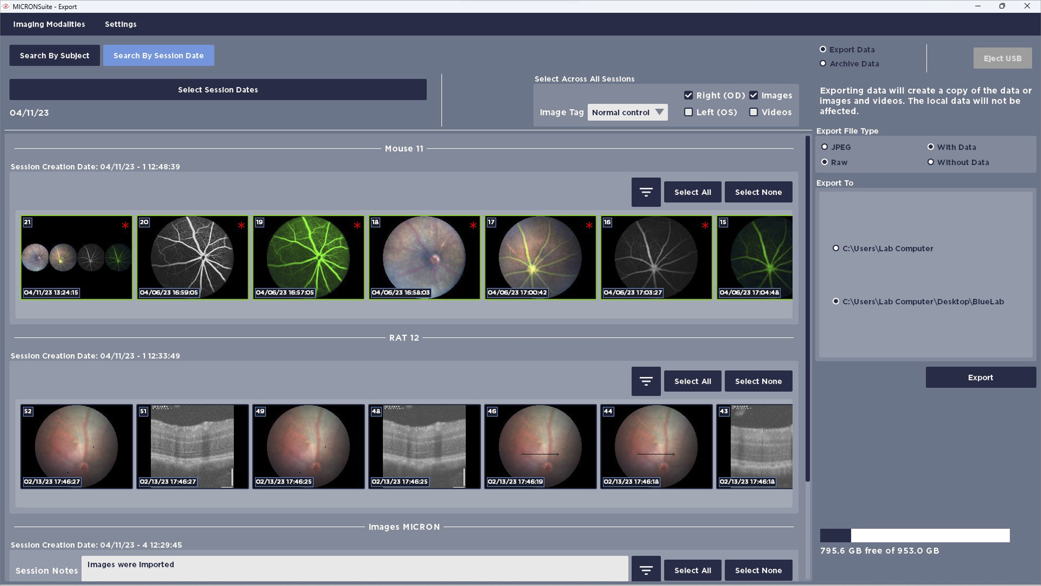 All while respecting the role-based security that’s built into MICRON Software Suite. A smart export/import mechanism makes it safe and easy to move images and data from the MICRON Control Unit in the lab to your MICRON Review Station-equipped computer in your office.